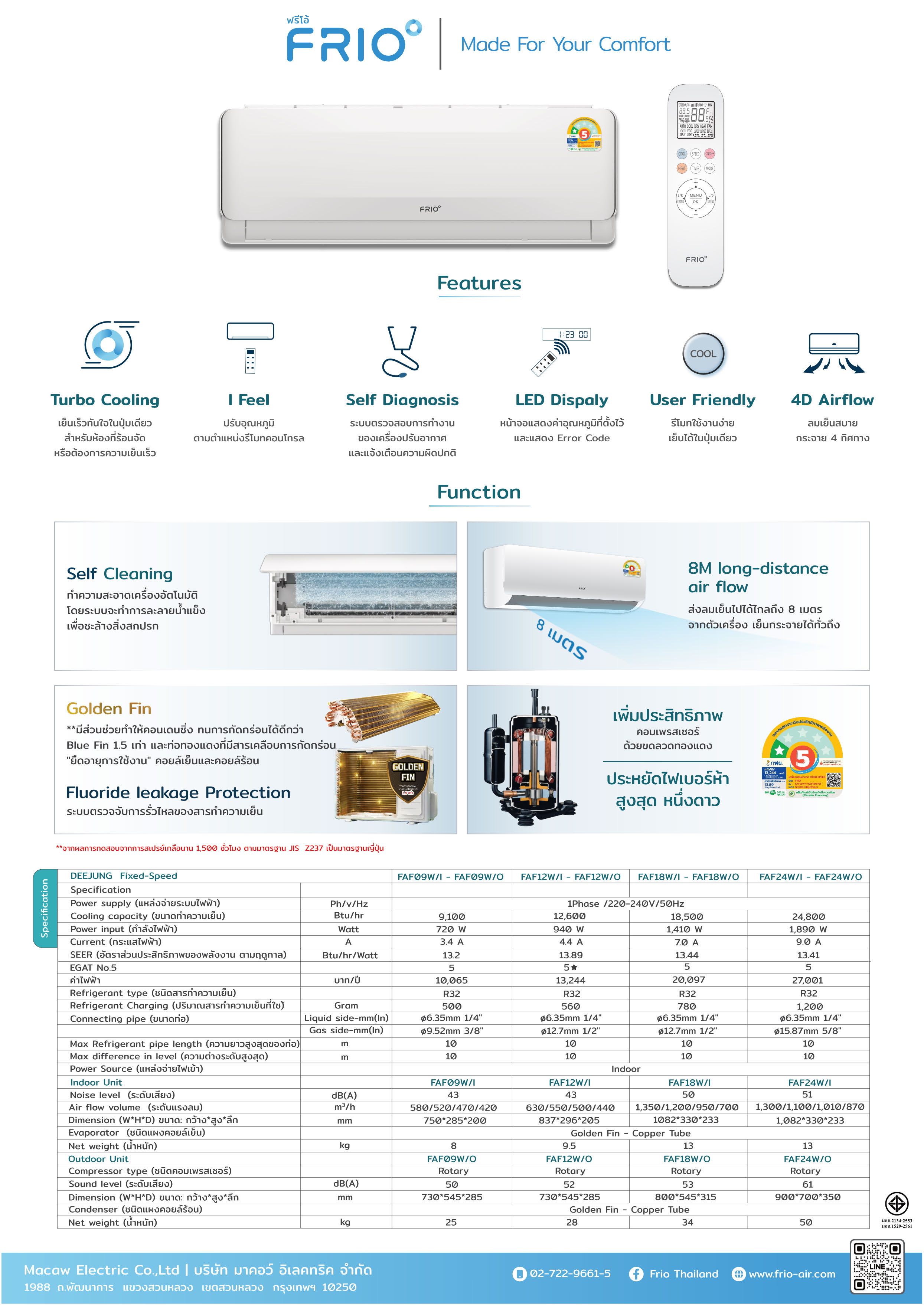 - 8 m long distrance air flow ส่งลมเย็นได้ไกลกว่า 8 เมตร